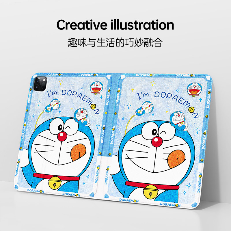 哆啦a梦新款适用苹果ipadpro平板保护套女ipad11带笔槽ipadair5/7卡通可爱air2轻薄防摔mini6/5/4外壳11英寸