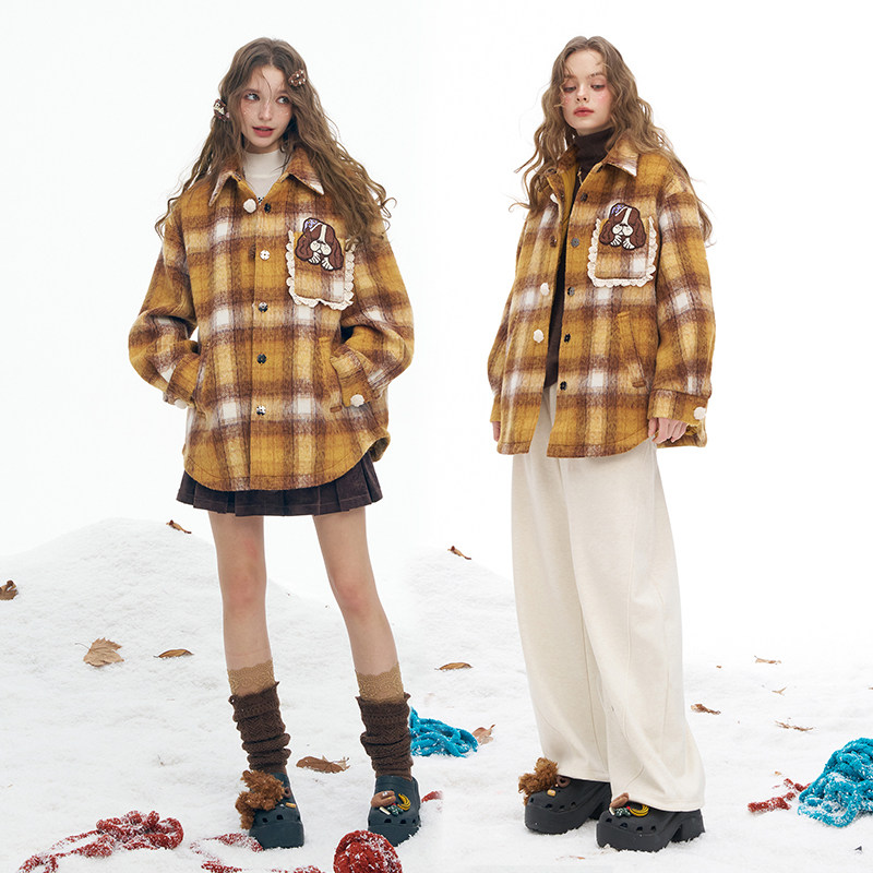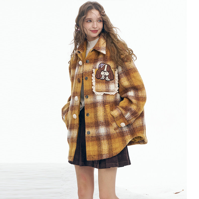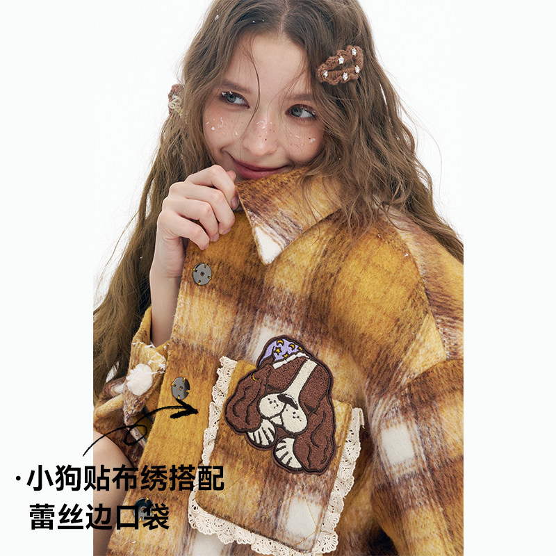 妖精的口袋复古格子仿毛呢外套女2025年冬季新款学院风呢子大衣