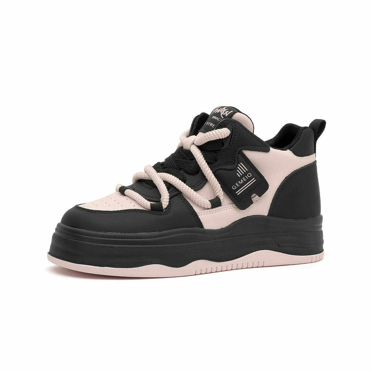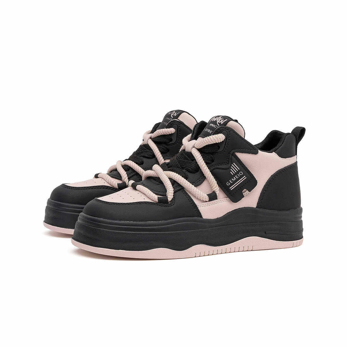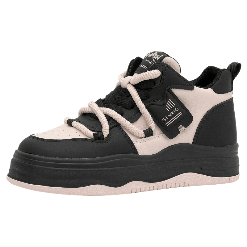 戈美其真皮高帮板鞋女款舒适春季新款韩版百搭松糕厚底休闲运动鞋