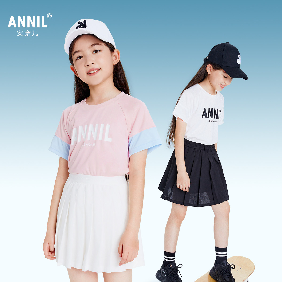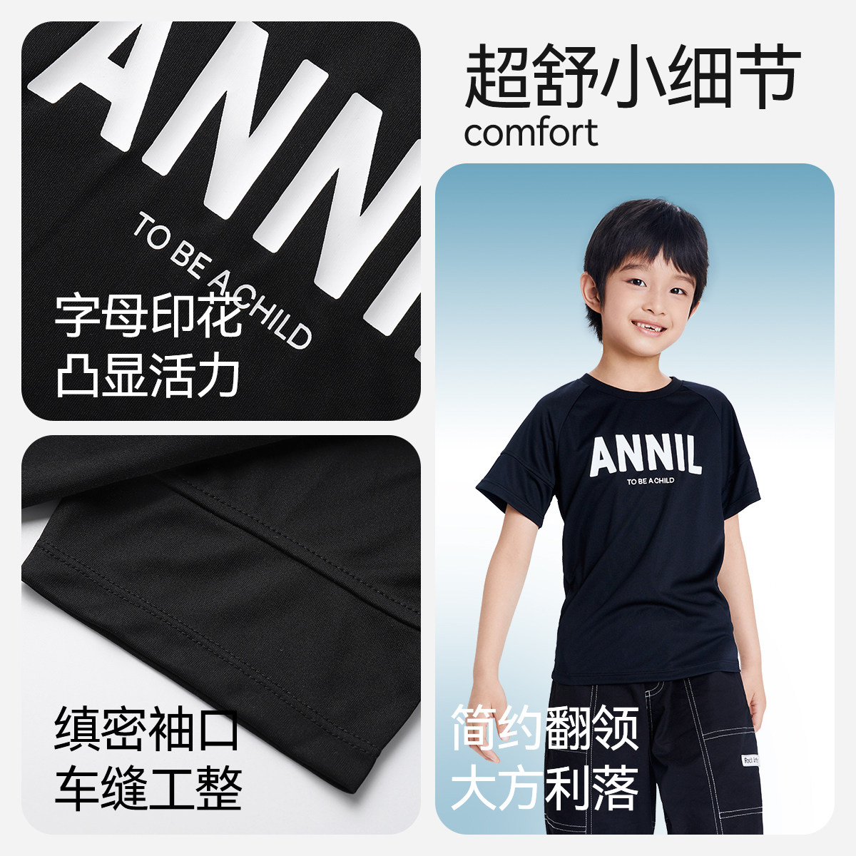 安奈儿童装男童女童圆领短袖T恤2025夏新款吸湿速干轻薄透气休闲