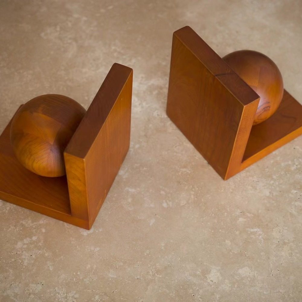 野木扶疏 mcm樱桃木实木质中古古典竖板书立书挡书架客厅书房摆件