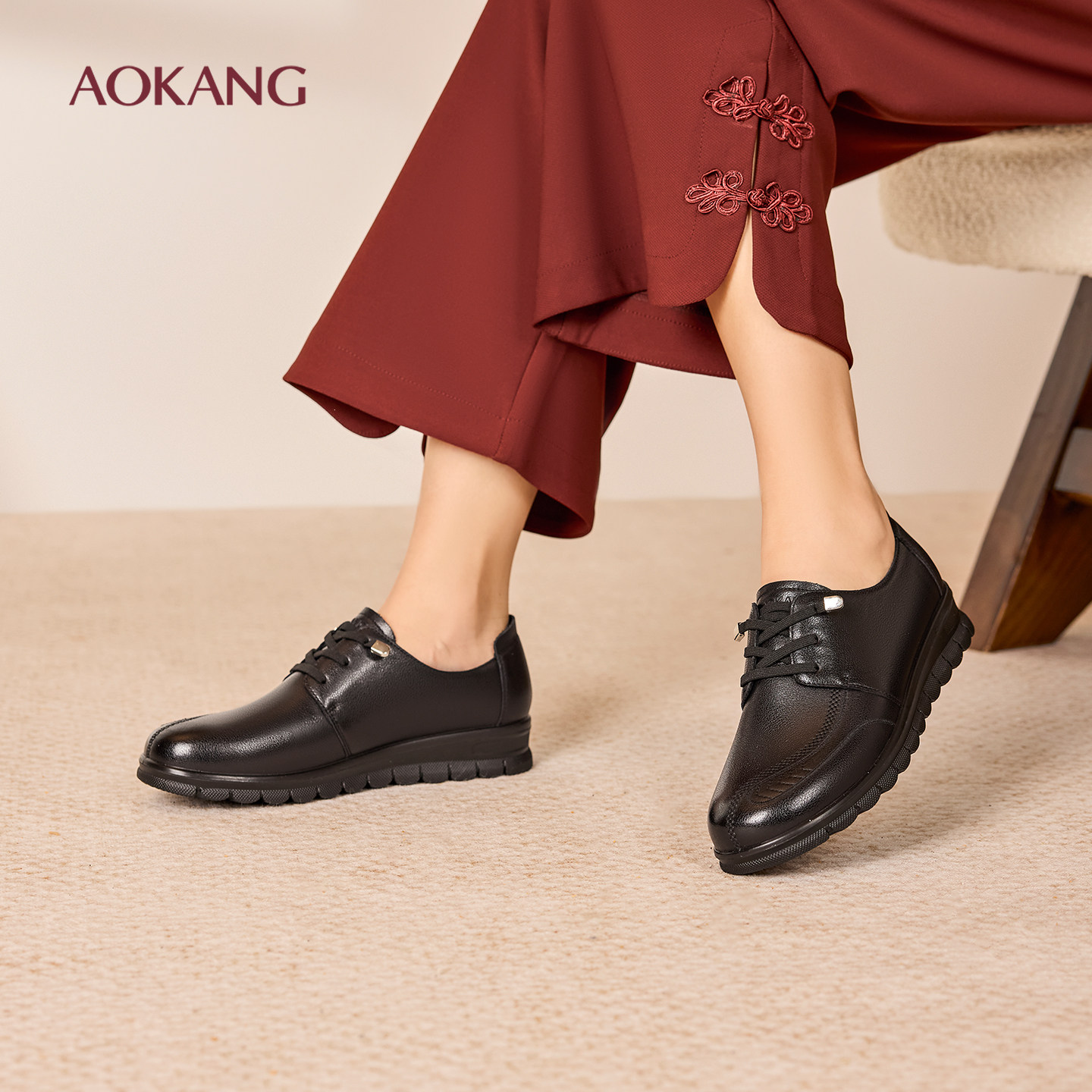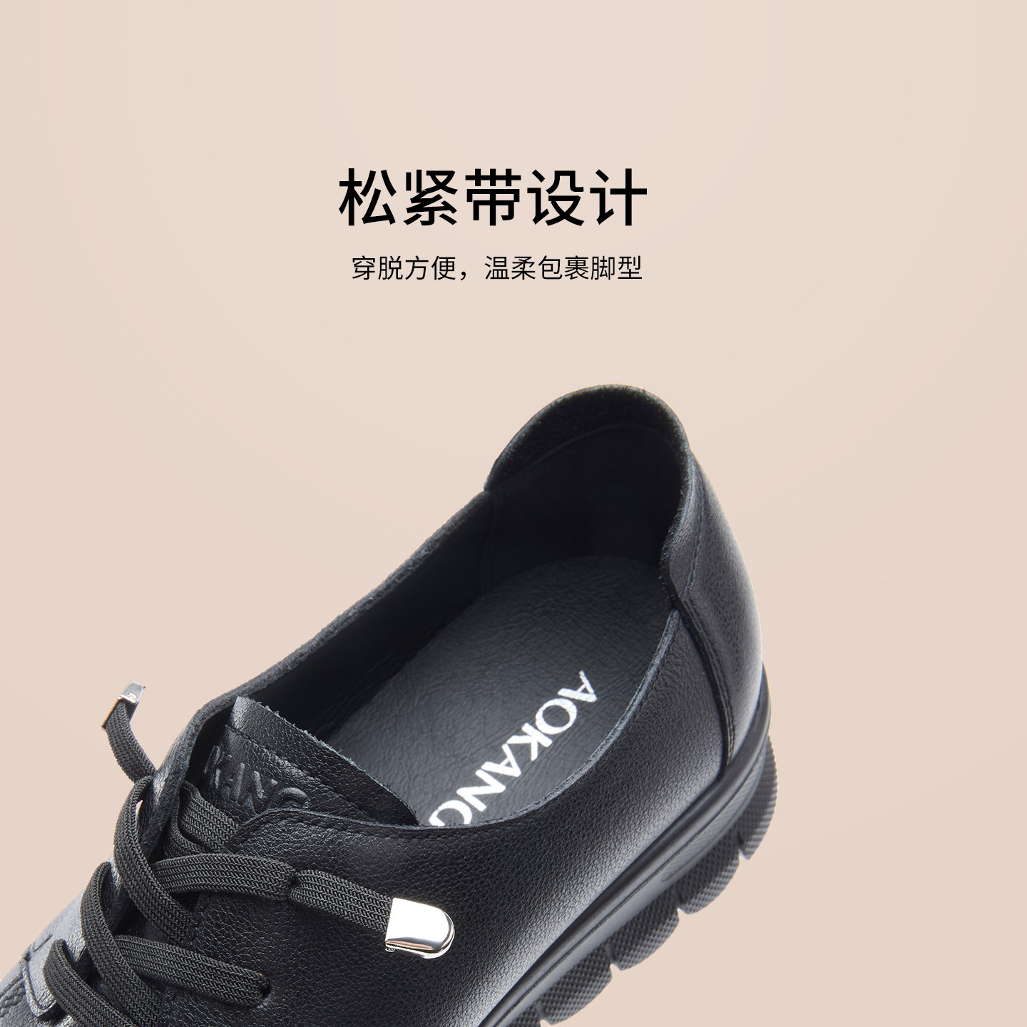 奥康 女鞋2025秋季新款妈妈鞋女鞋真皮舒适平底软底软面皮鞋