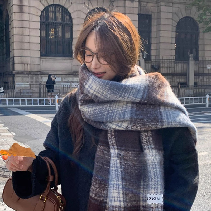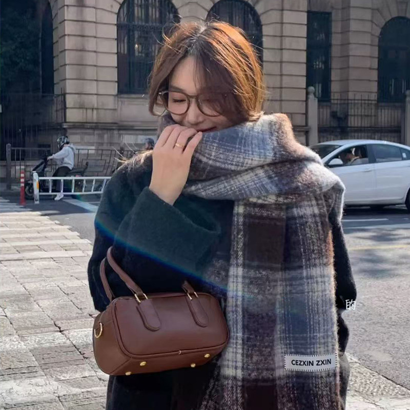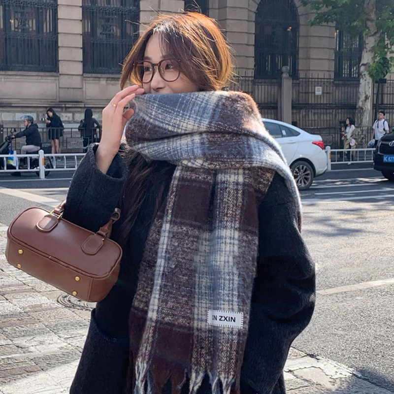 韩版马海毛格纹围巾女2025新款冬氛围感流苏披肩加厚防寒保暖围脖