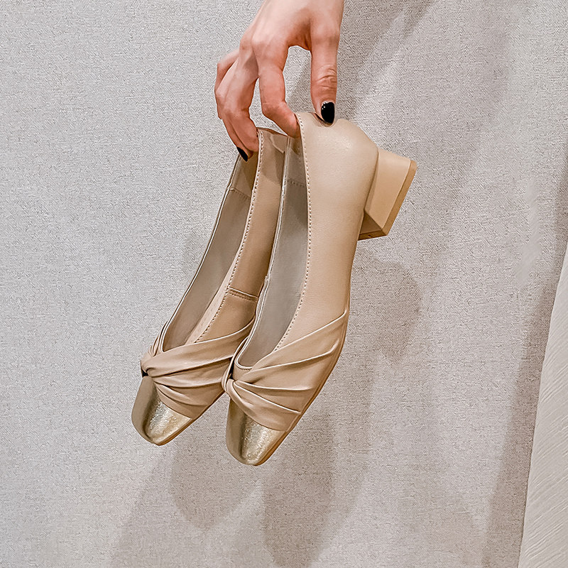 【明星同款|静音系列】千百度练习曲裸色高跟鞋真皮通勤法式单鞋