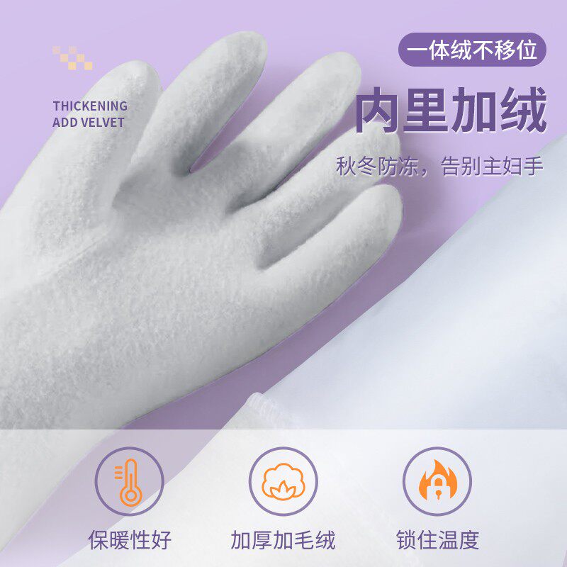 丁腈手套一体绒家务洗碗厨房耐用型加厚加绒洗衣服做饭防水刷锅碗