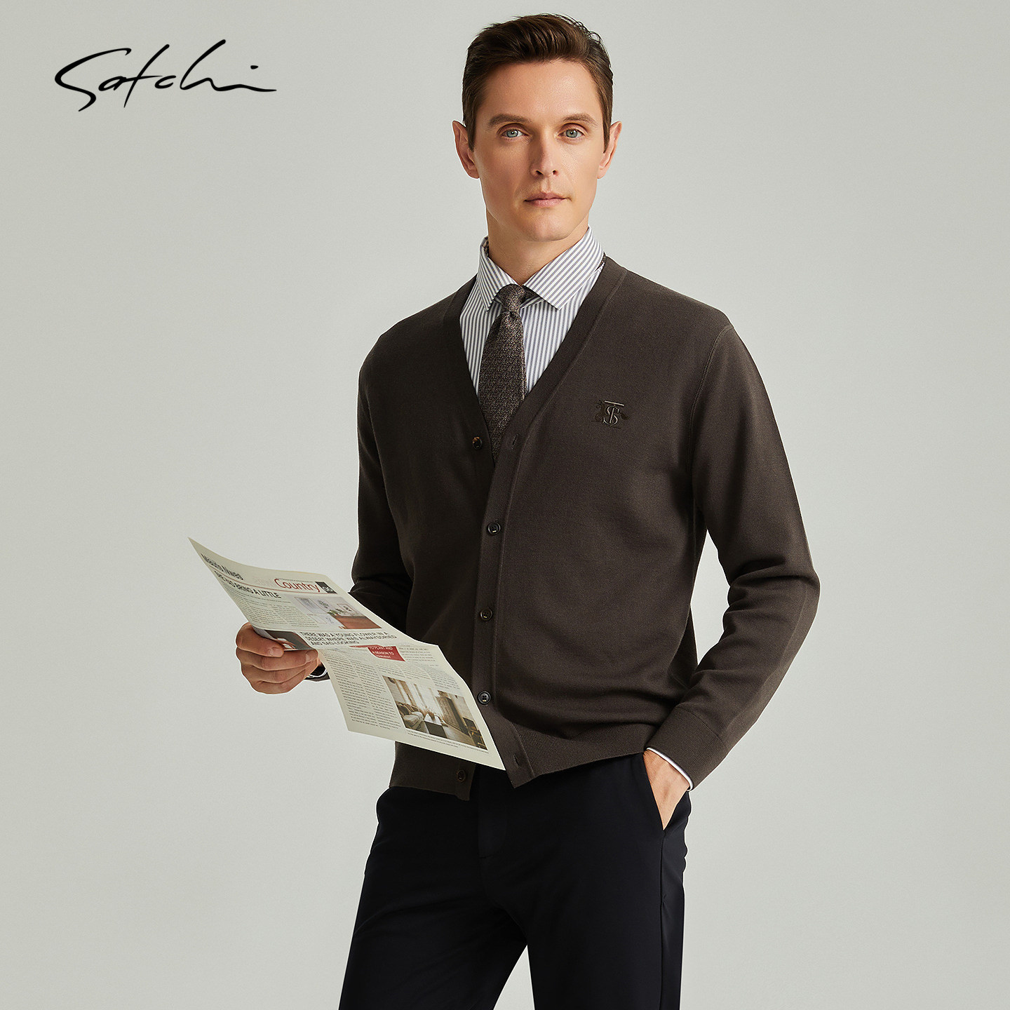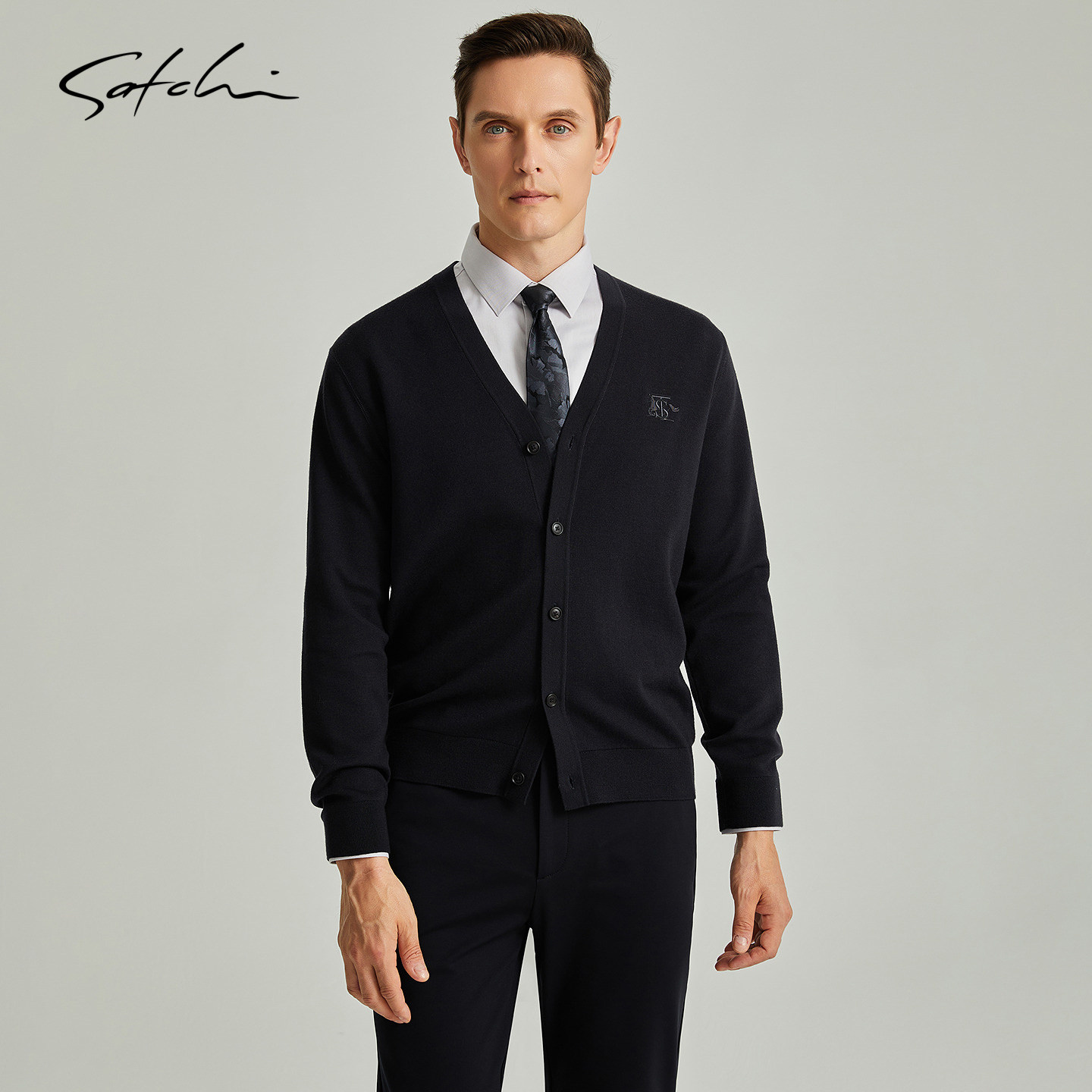 [情人节礼物]SATCHI沙驰男装男士针织开衫外套冬季羊毛V领毛衣