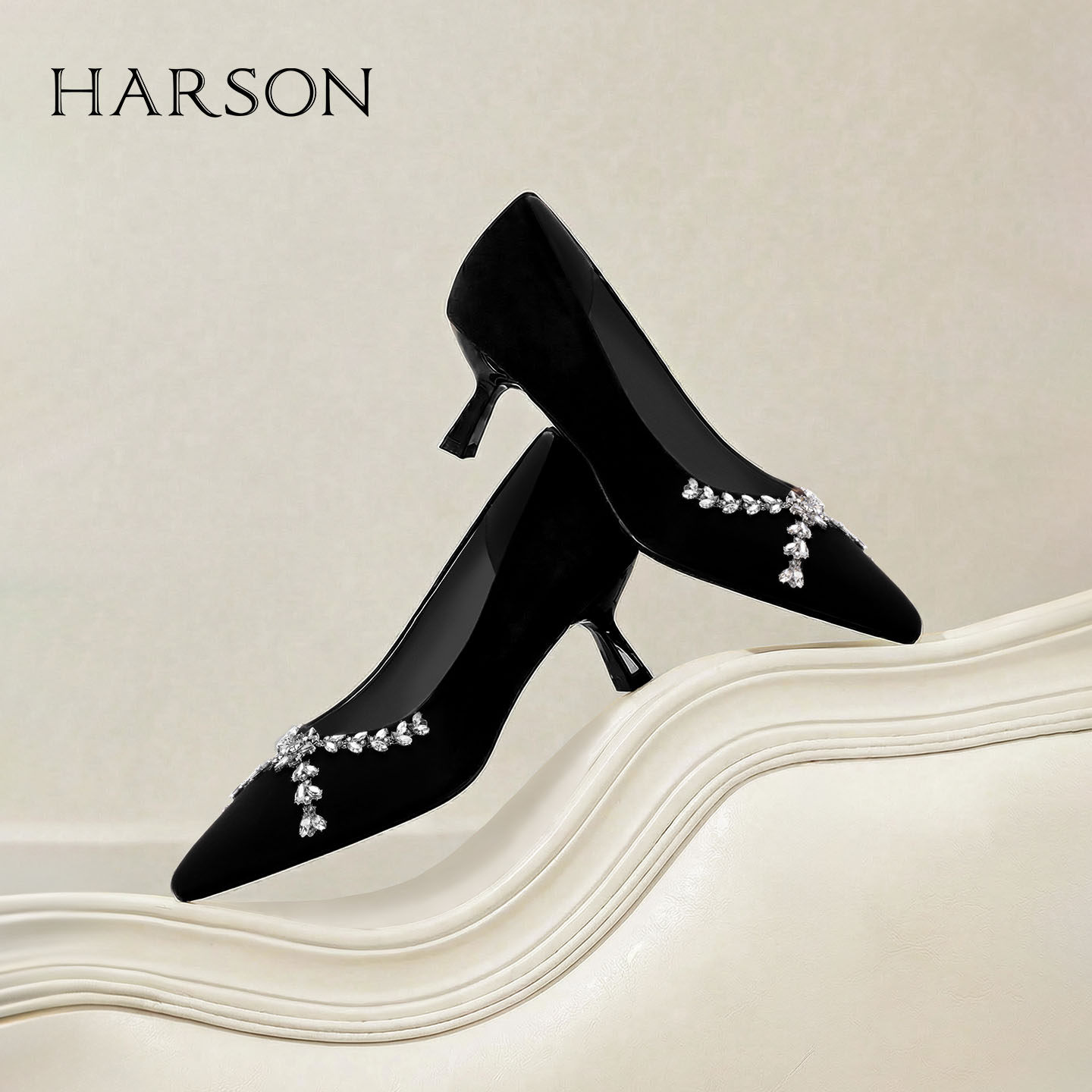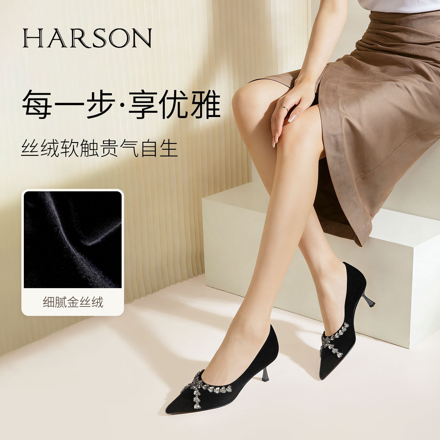 哈森/HARSON【钻闪小夜曲】25春新款气质尖头水钻高跟鞋浅口单鞋