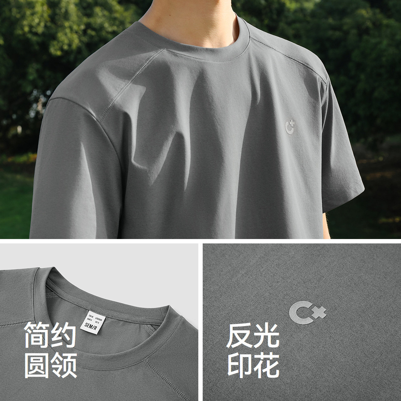 森马短袖T恤男夏季速干反光印花针织衫2026新款舒适运动防晒上衣