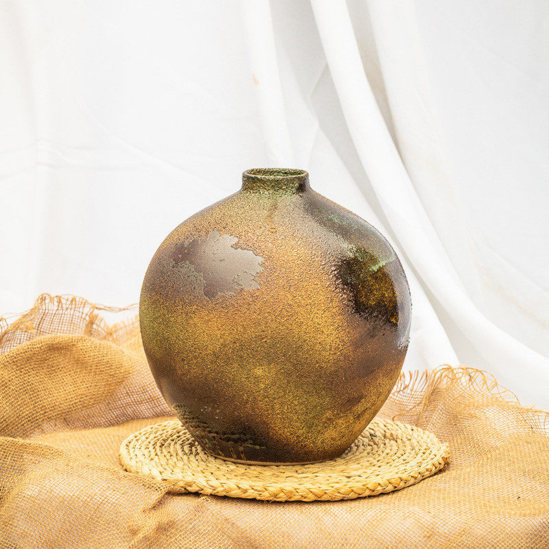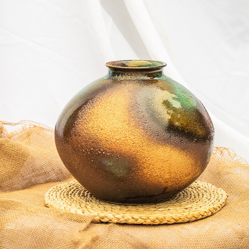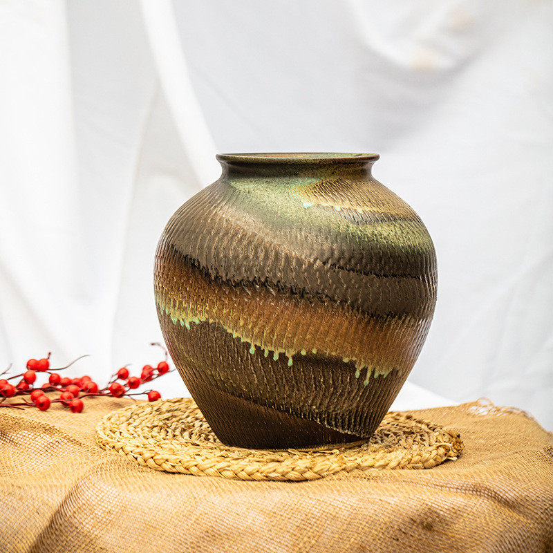 新中式手工陶罐粗陶多肉花盆摆件陶瓷花盆陶罐花器插干花瓦罐