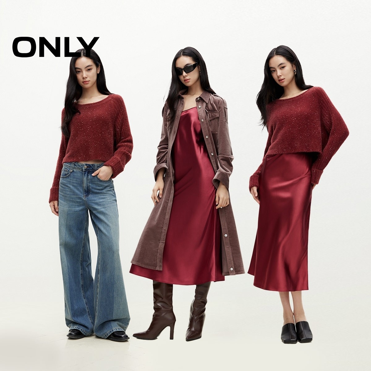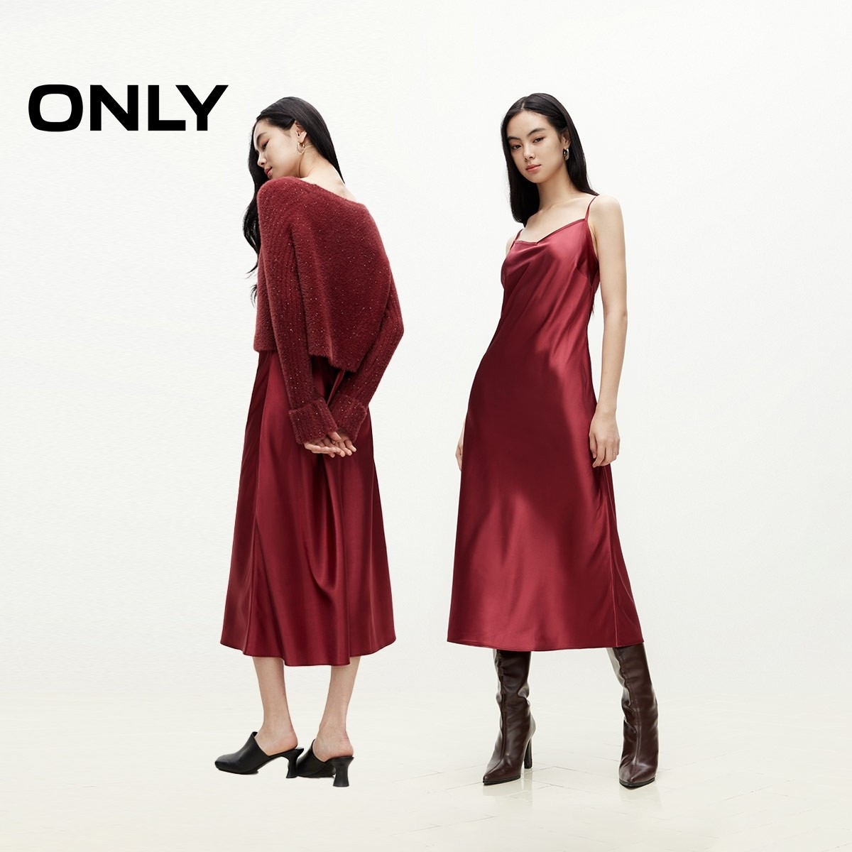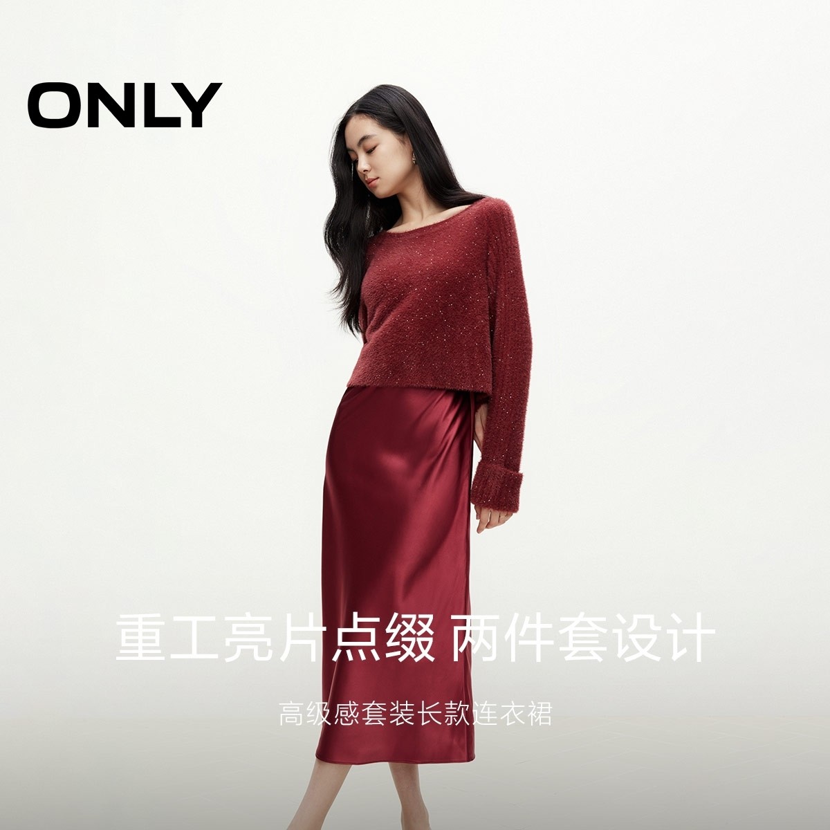 ONLY2025春季新款时尚潮流高级感遮肉显瘦套装长款圆领连衣裙女