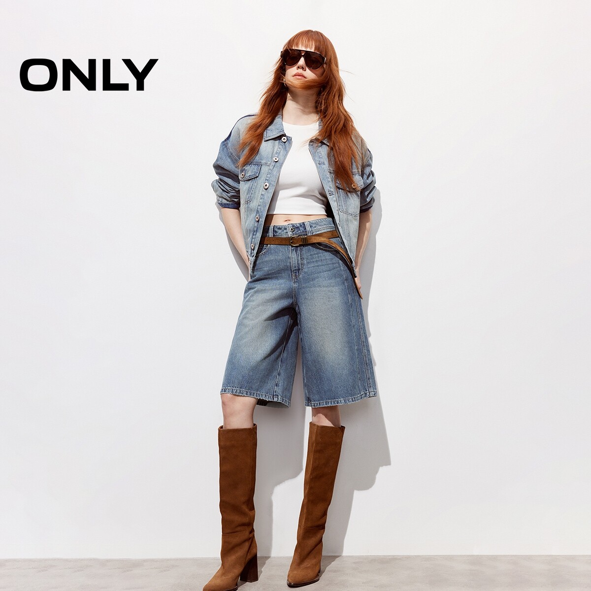 ONLY2026春季新款男友风水洗百慕大短裤高腰双裤线五分裤牛仔裤女
