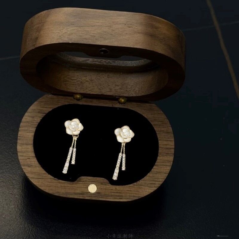 Vintage古着巴黎的白玫瑰百搭高级气质爆款耳钉耳夹山茶花流苏