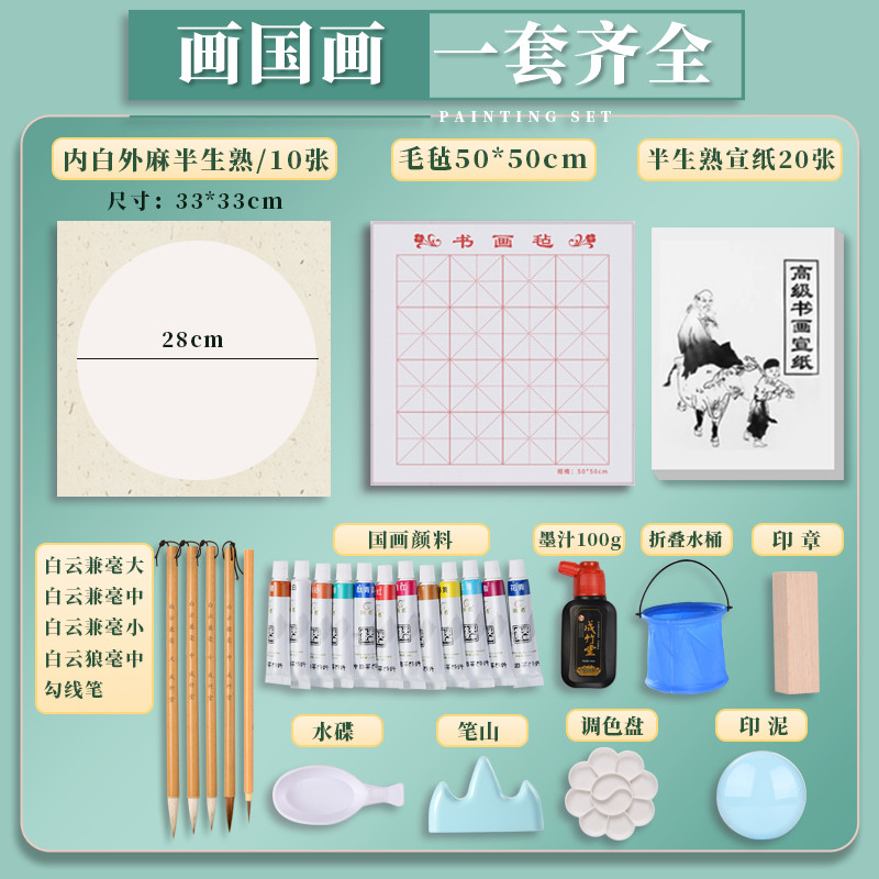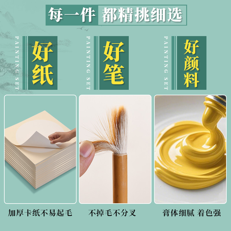 国画初学者套装三年级画画颜料入门12色中国画用品工具全套水墨画高级工笔画材料小学生儿童毛笔国画正品全套