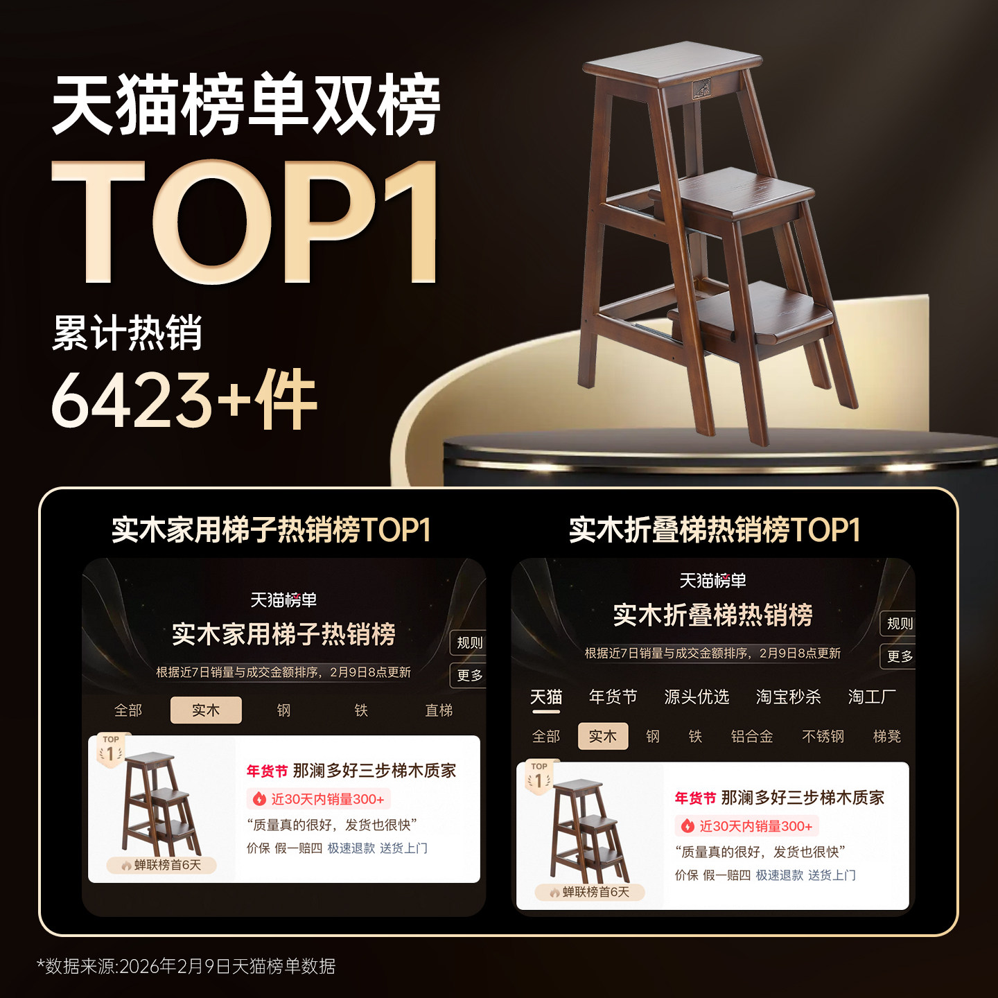 实木整装发货,升级推拉式三步梯