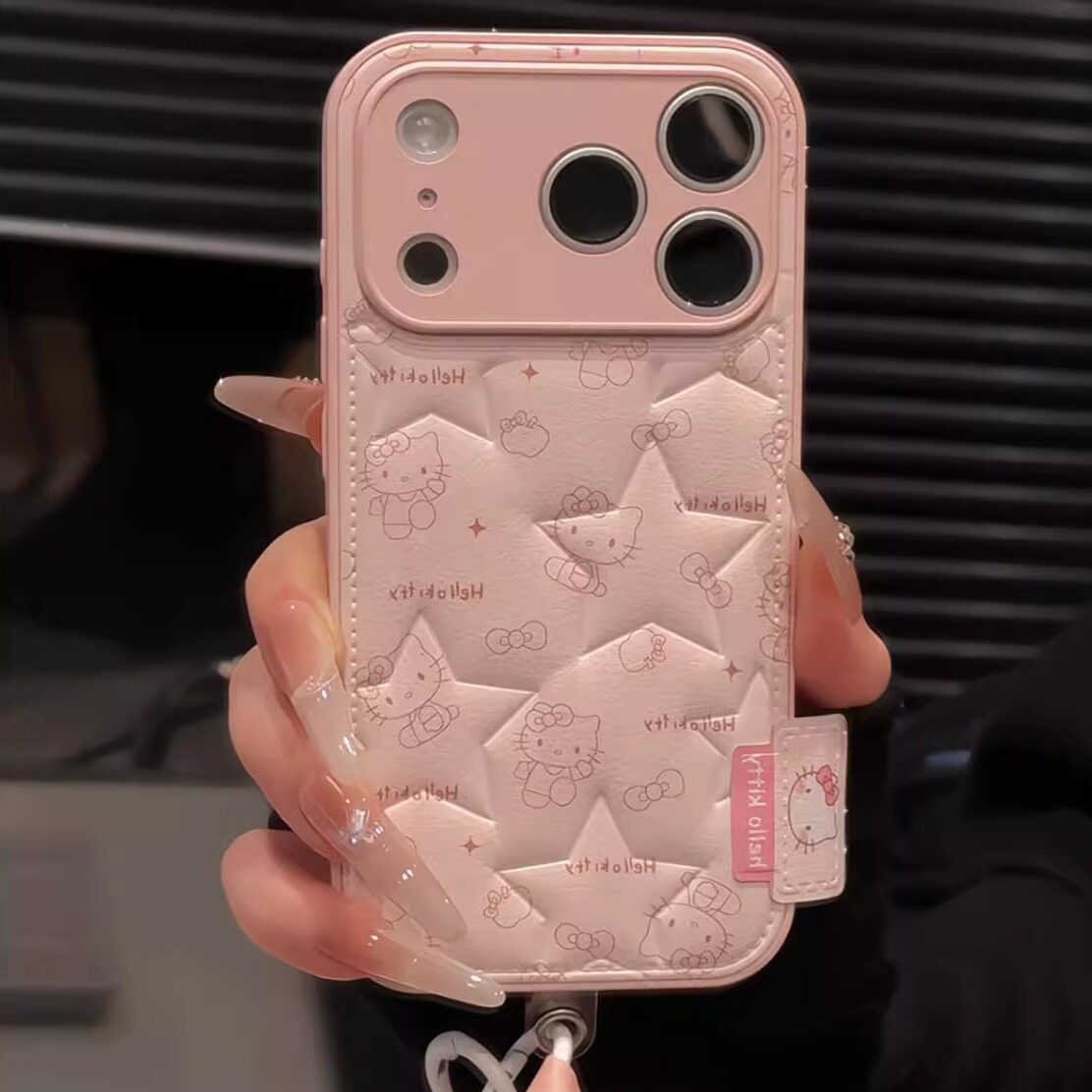 线条kt猫适用苹果17pro手机壳16pm肤感五角星鼓包ins风华为mate70女粉色华为pura80pro防摔可爱