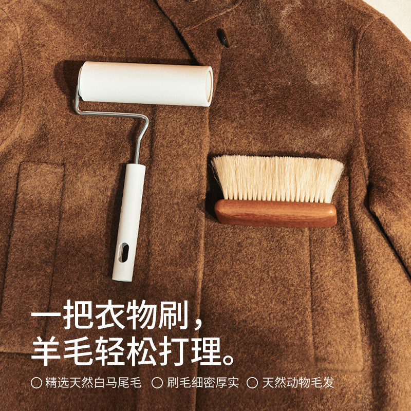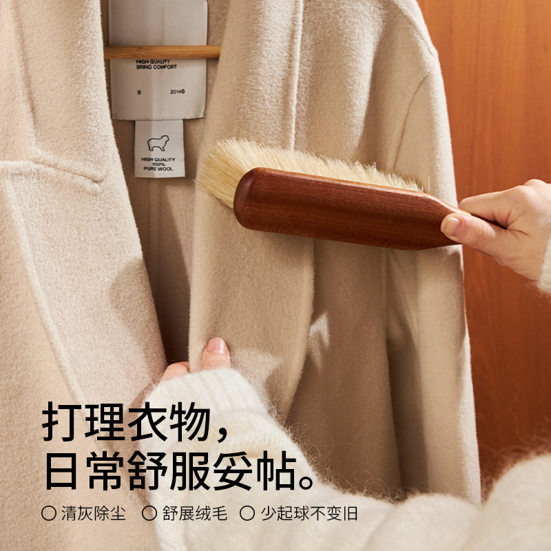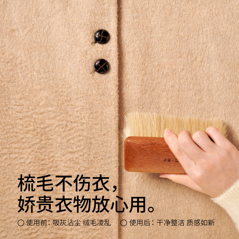 寻瀑白马毛衣物护理刷 全实木100%天然马毛羊毛羊绒大衣打理专用