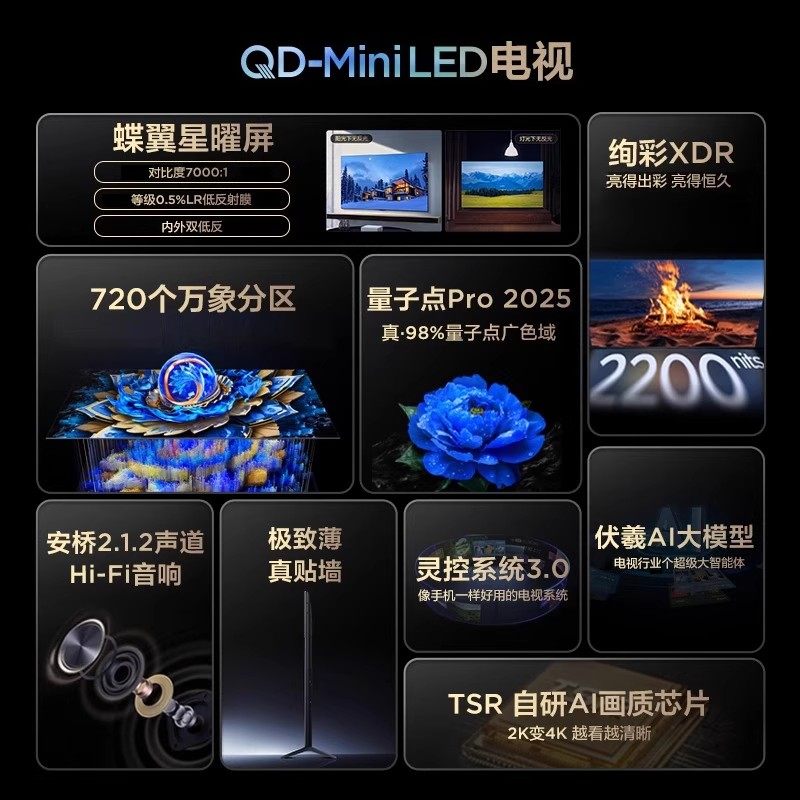 【补贴20%】TCL电视 75T7L Pro 75英寸 QD-Mini LED 平板电视机-X