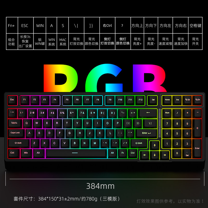 客制化套件YG98三模静音麻将音可替换键帽蓝牙无线连接热插拔键盘