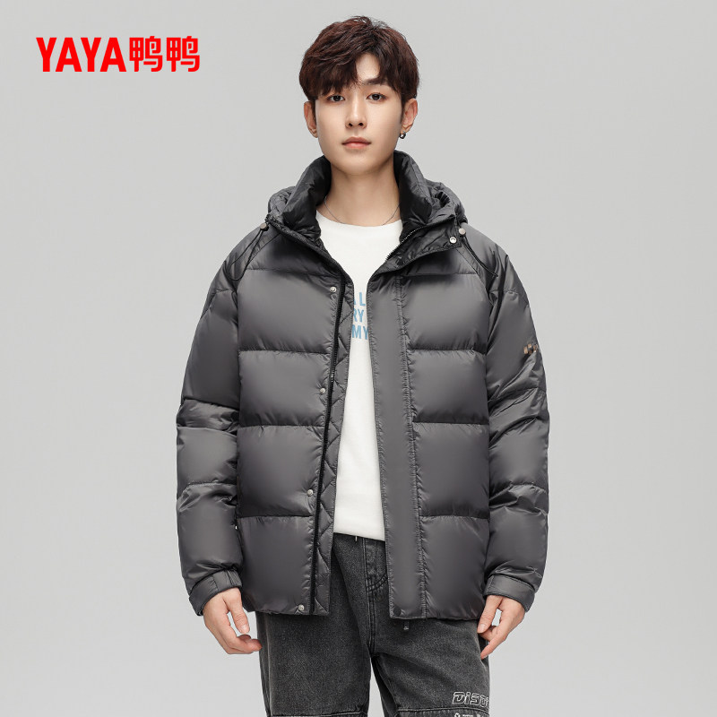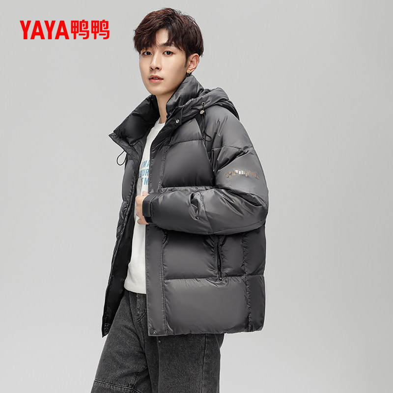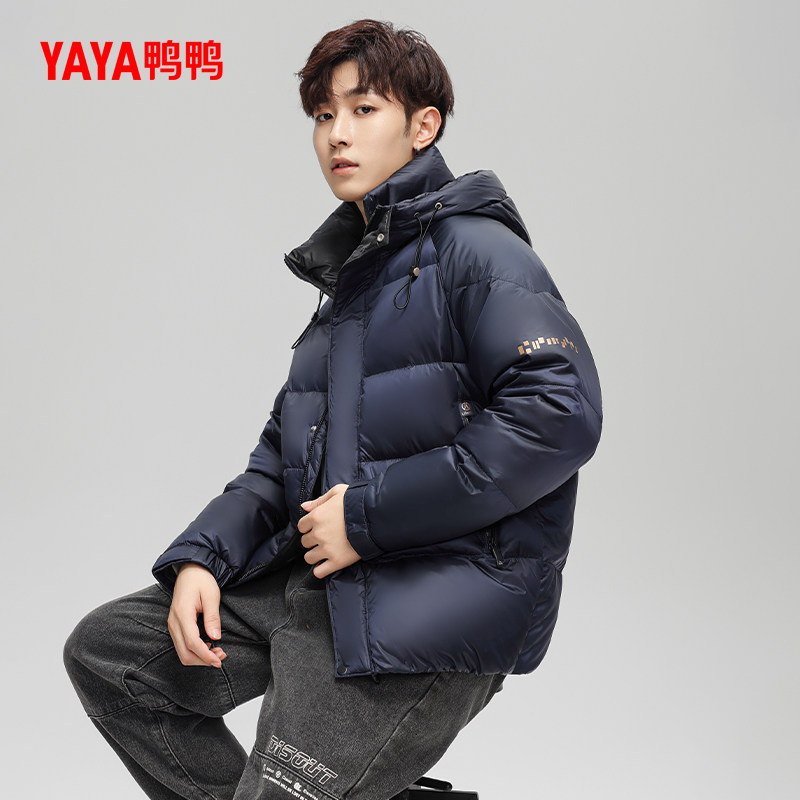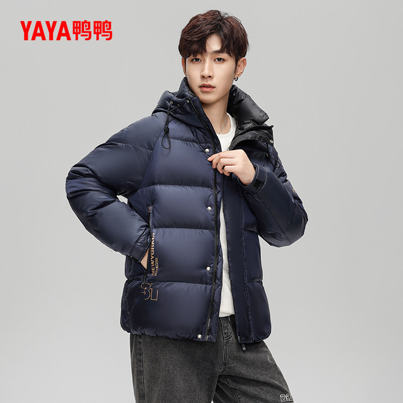 鸭鸭轻薄羽绒服男士2025年秋冬反季短款保暖休闲时尚连帽鸭绒外套