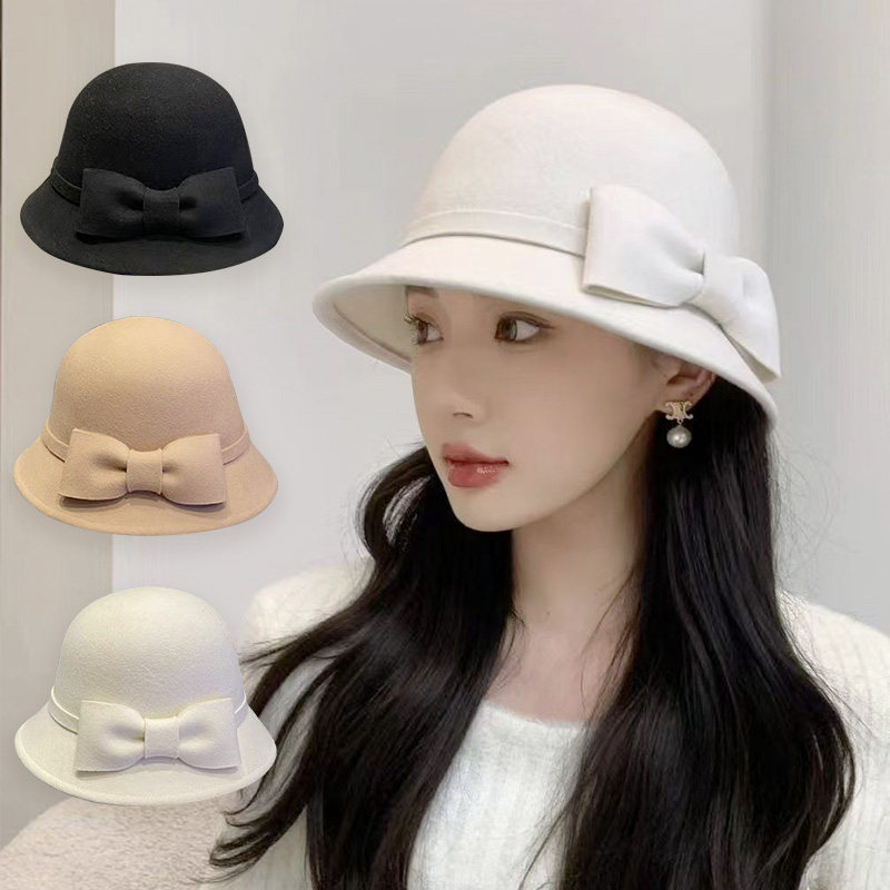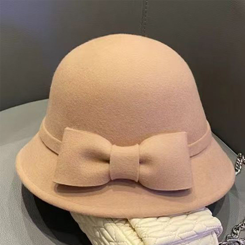 女士帽子礼帽复古秋冬季蝴蝶结盆帽气质小檐渔夫帽名媛优雅水桶帽