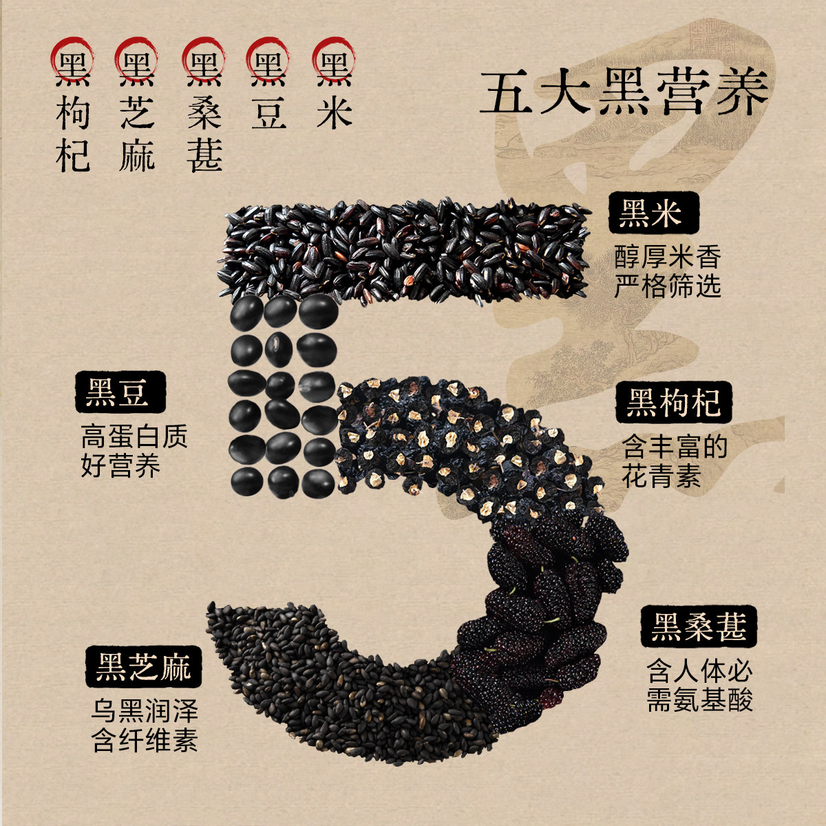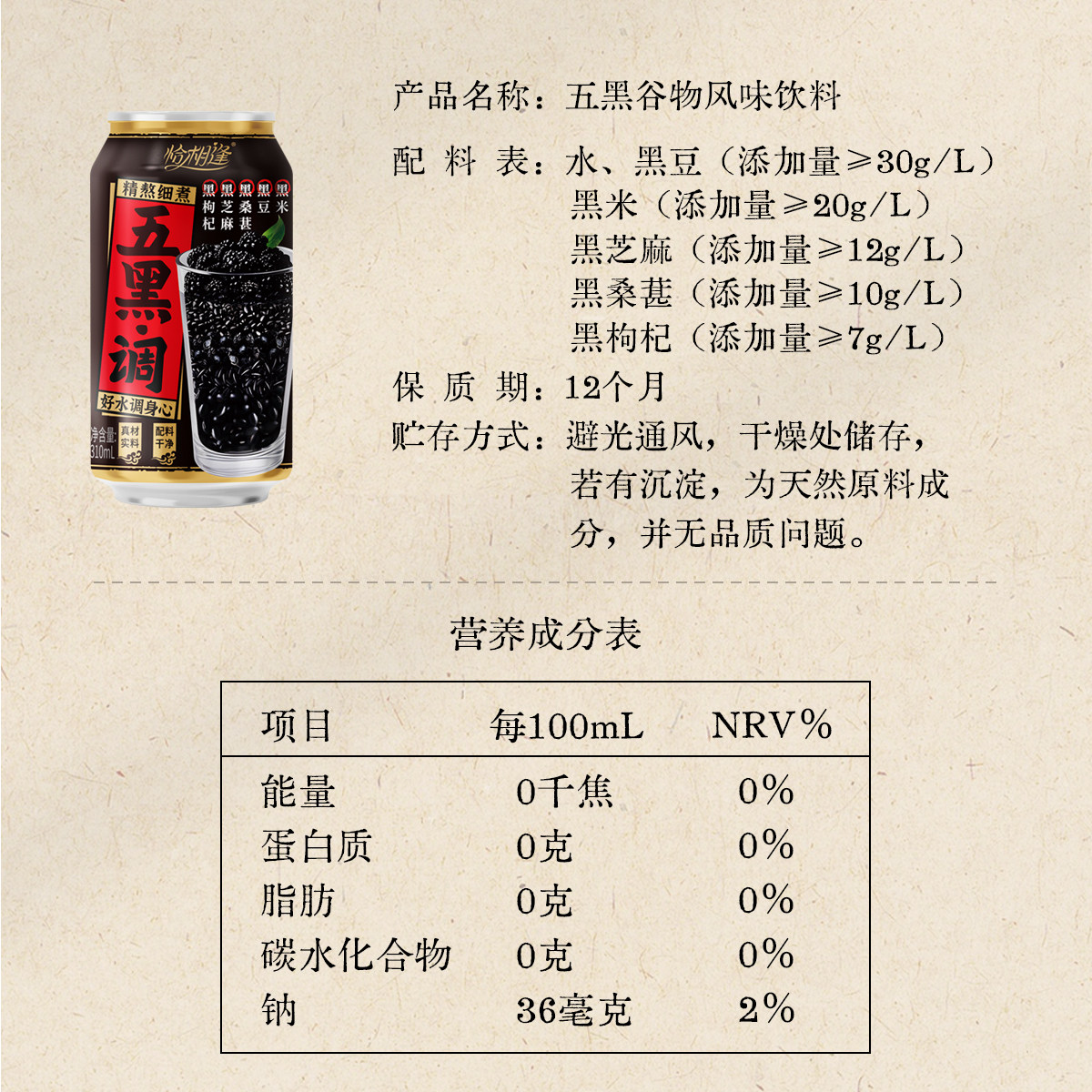 五黑谷物风味饮品黑枸杞黑桑葚黑米黑豆黑芝麻0饮料310ml*8罐瓶装
