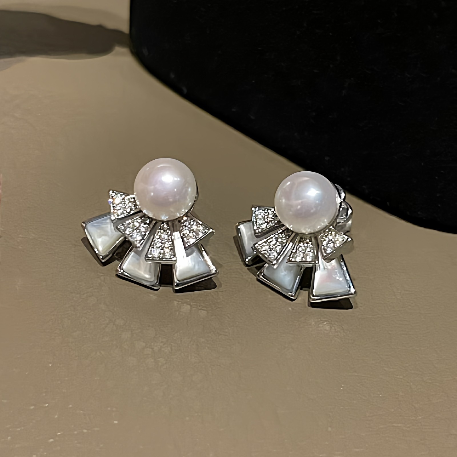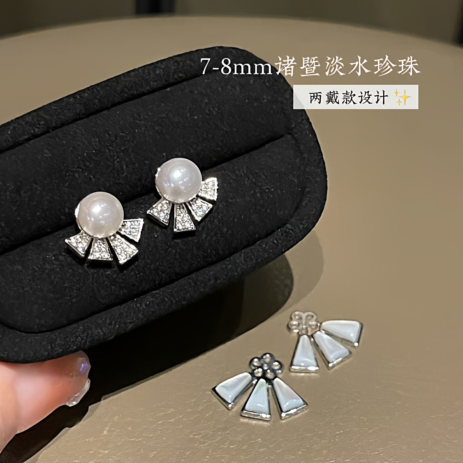 诸暨淡水珍珠耳钉白贝母扇形耳环气质女人时尚耳饰节日礼物送妈妈
