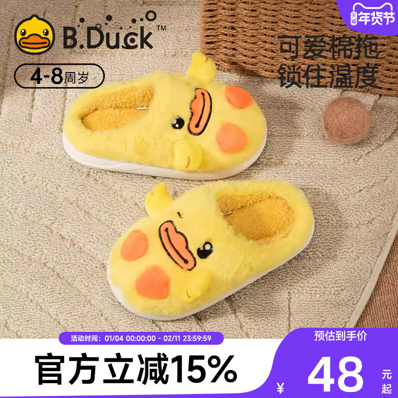 小黄鸭童鞋儿童棉拖鞋毛绒秋冬女童男童宝宝家居室内拖鞋防滑可爱