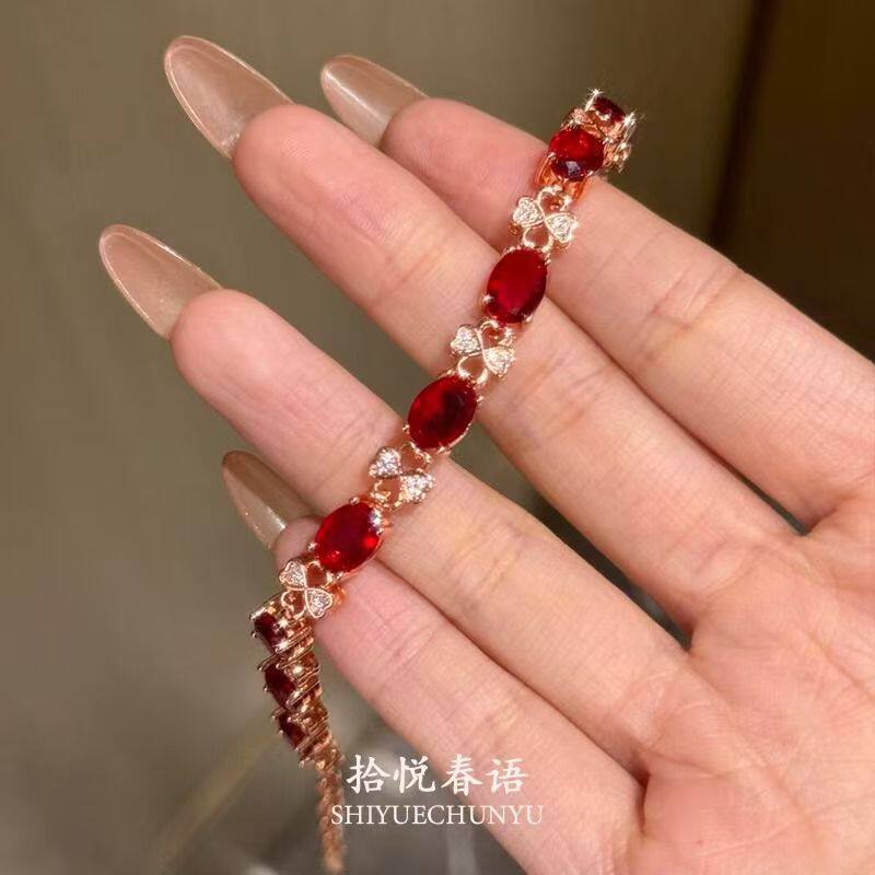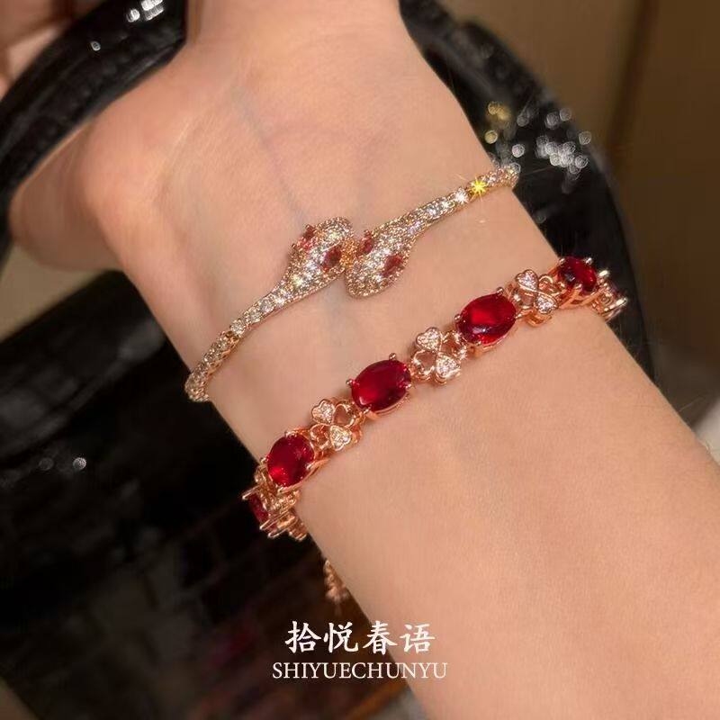 「朱樱」爆闪鸽血红色灵蛇手链本命年设计高级感七夕礼物手饰锆石