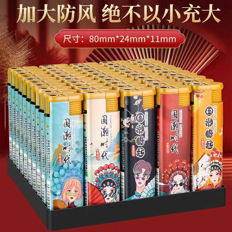 50支一盒大号宽版防风直冲打火机超市批发加厚防爆家用耐用潮流