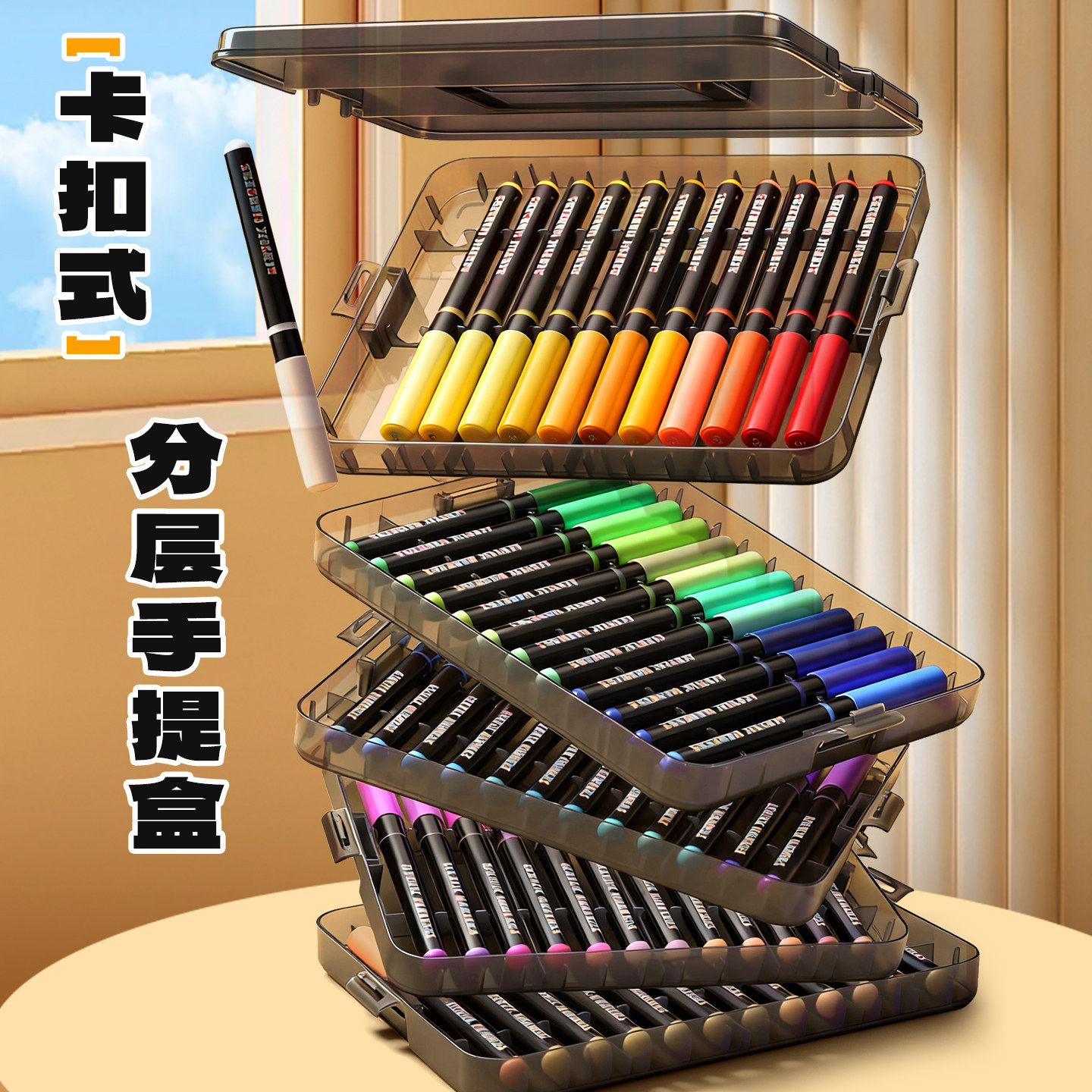 直液式丙烯马克笔72色软头小学生专用透明层叠黑盒不易透纸强覆盖力可叠色宝宝涂鸦美术画画幼儿园水彩笔手提