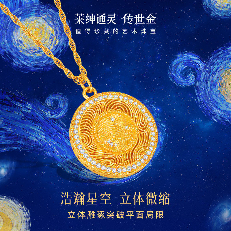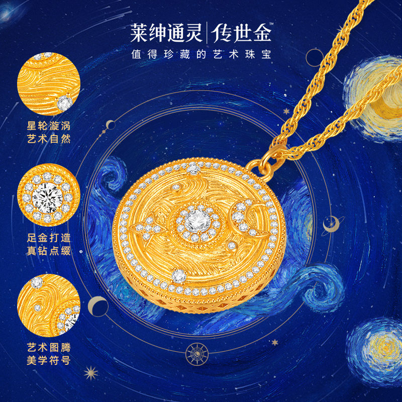 【商场同款】莱绅通灵传世金 艺术馆转运星轮 足金黄金钻石项链