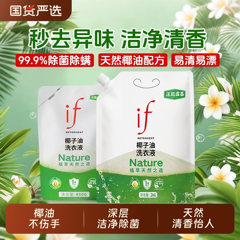 if椰子油洗衣液除菌除螨持久留香深层洁净宿舍学生装去污渍家庭装