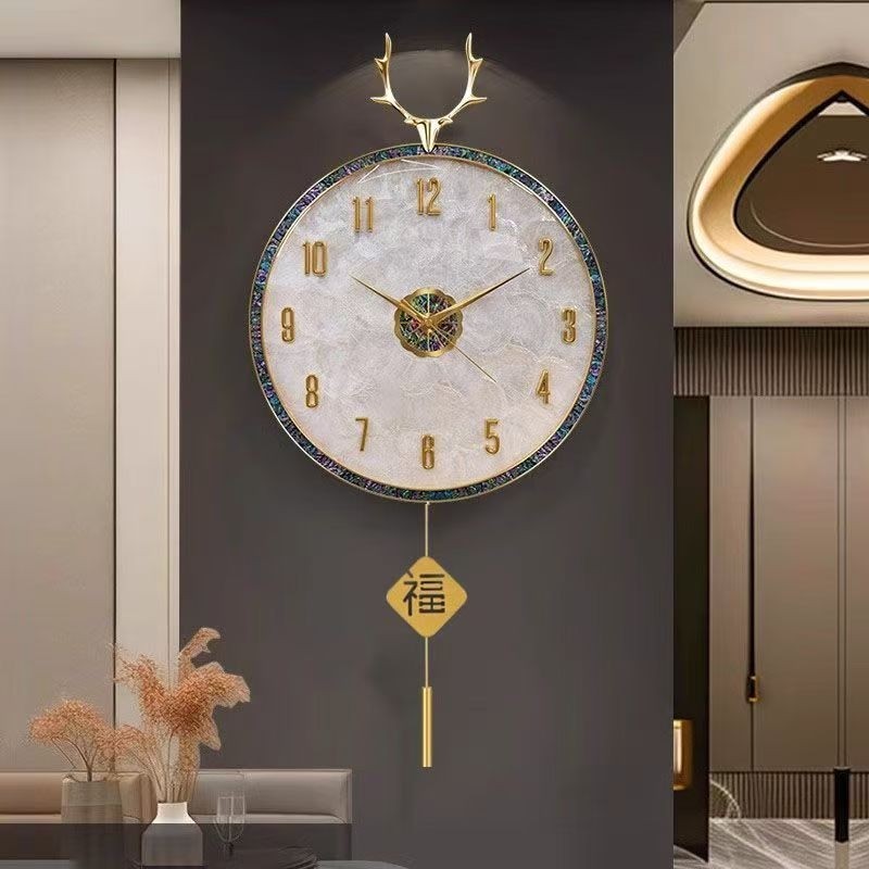 2025新款免打孔静音挂钟客厅吉祥福禄石英钟餐厅创意装饰钟表