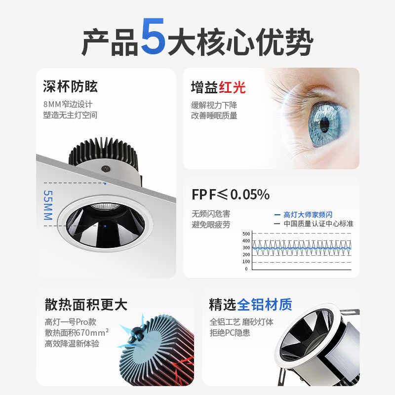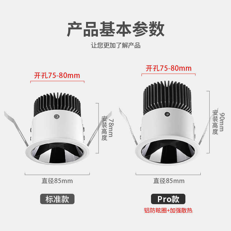 射灯cob天花灯护眼嵌入式cob深防眩光深杯全光谱客厅家用开孔灯具