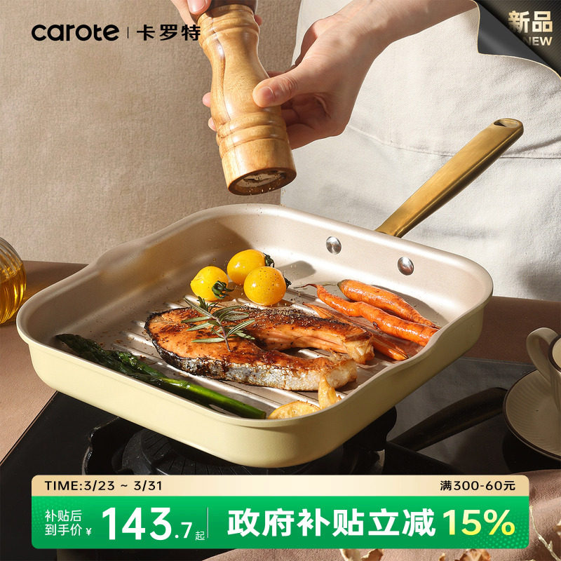 卡罗特牛排锅不粘锅煎牛排专用锅平底锅家用牛扒煎锅燃气灶电磁炉