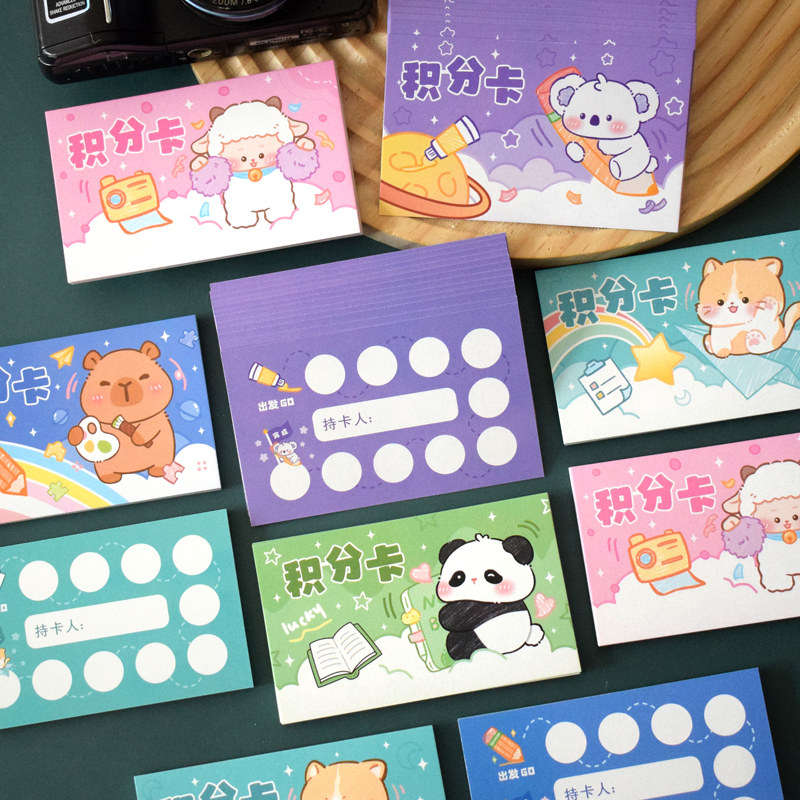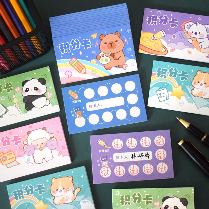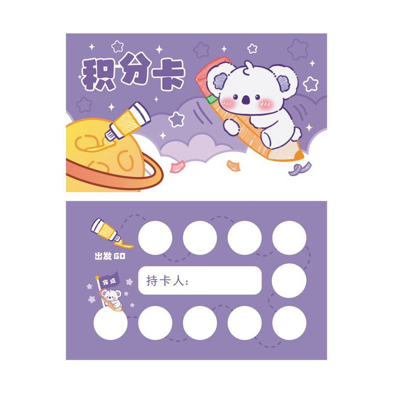 儿童可爱卡通积分卡熊猫考拉送孩子课堂亲子互动激励积点许愿卡片