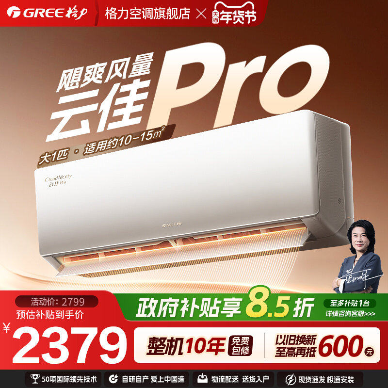 【Gree/格力官方】新一级能效变频空调挂机大1匹冷热两用云佳Pro