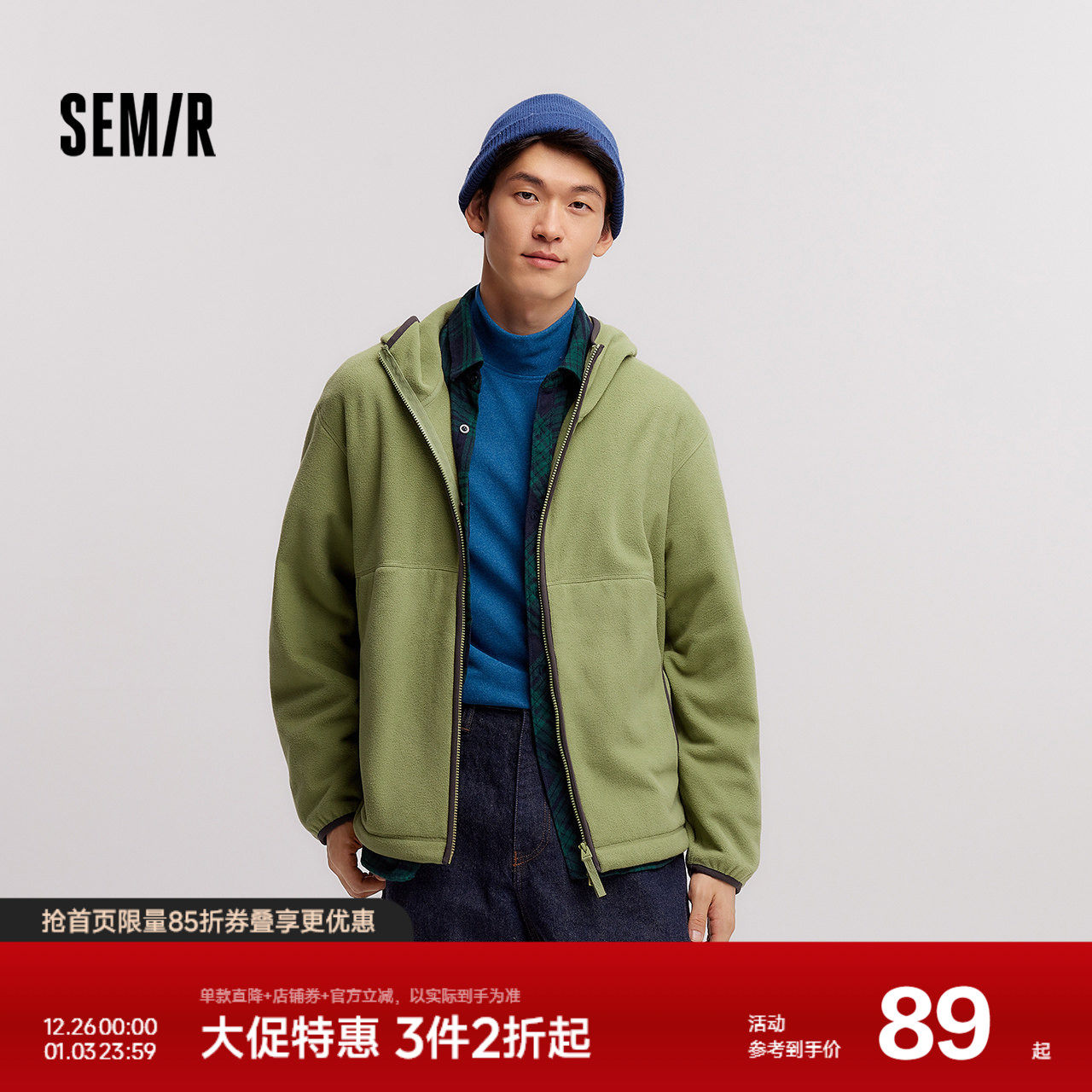 森马夹克男抗静电摇粒绒2024新款毛绒外套宽松连帽冬装百搭情侣款
