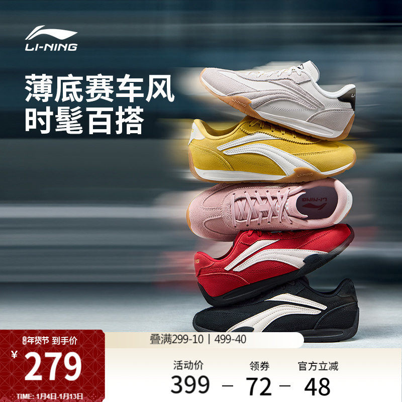 李宁菲林TURBO丨休闲鞋女新款复古红色德训鞋薄底赛车运动鞋子男