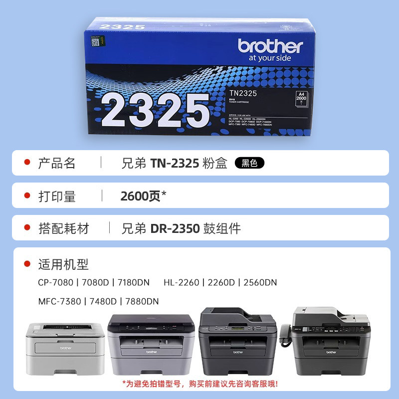 原装兄弟7080|DCP-7080D|7180DN打印机brother粉盒硒鼓墨盒2325适用于2260/2260D/2560DN/7380/7480D/7880DN