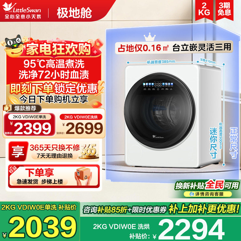 小天鹅内衣裤2KG洗烘脱一体迷你小型袜子家用全自动母婴儿洗衣机