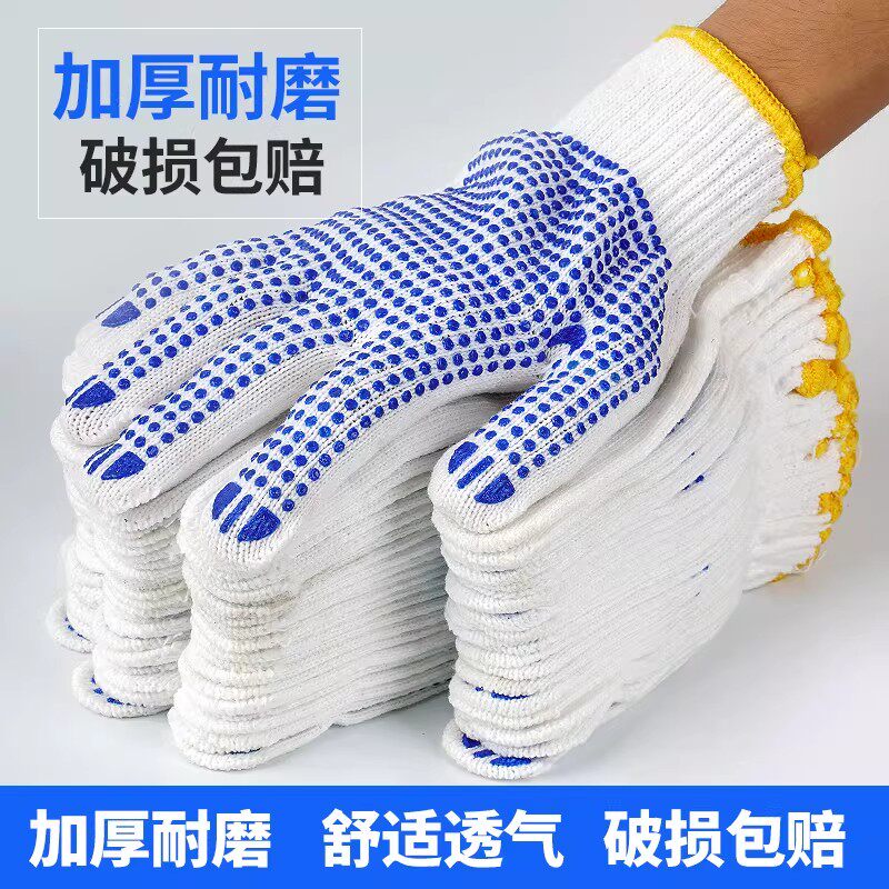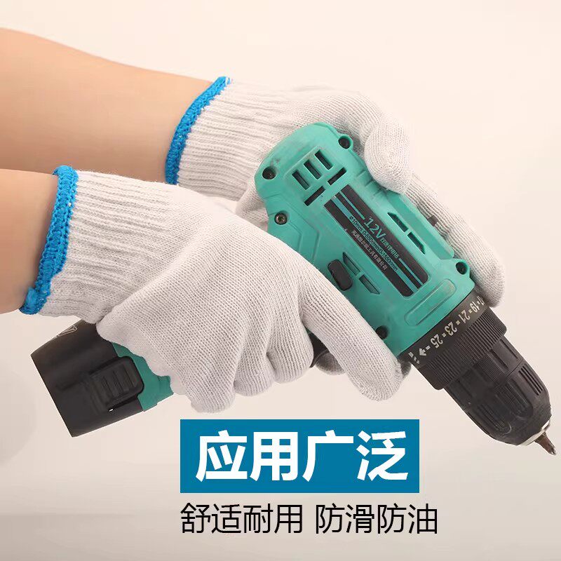 劳保棉线手套耐磨工作防滑纯棉加厚白棉纱尼龙劳工劳动男工地干活