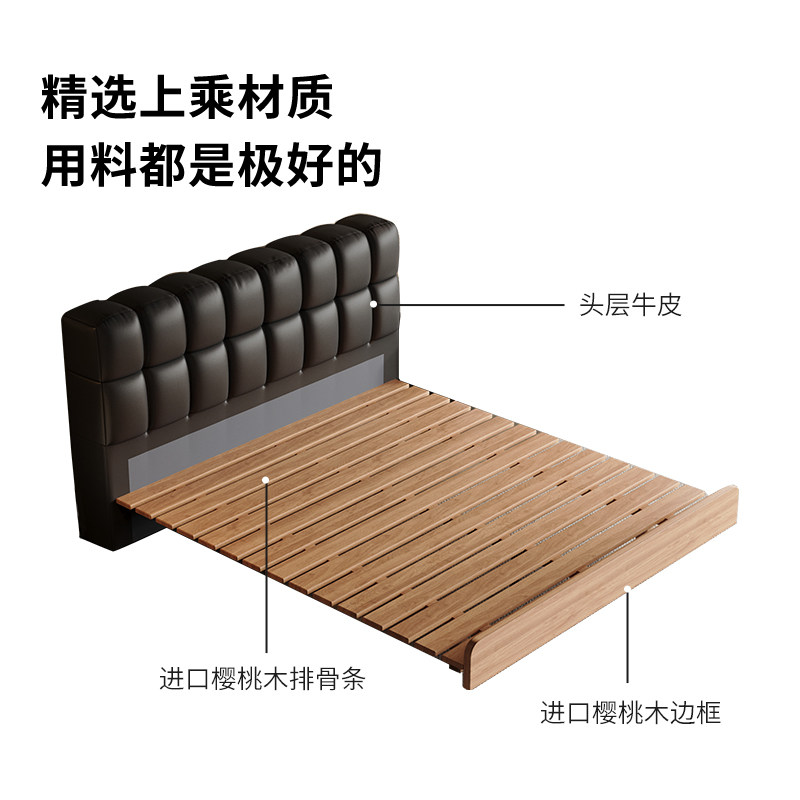 慕思樱桃木全实木床主卧现代简约卧室大床双人床泡芙床软包奶油风