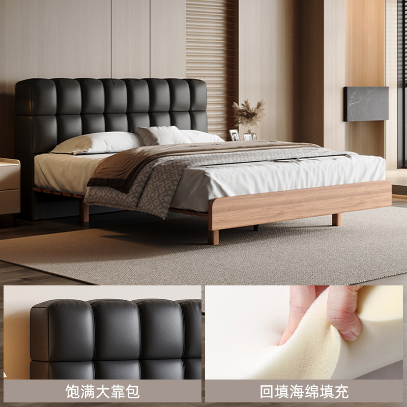 实木床现代简约胡桃木主卧1.5米双人床1.8米主卧轻奢婚房双人床