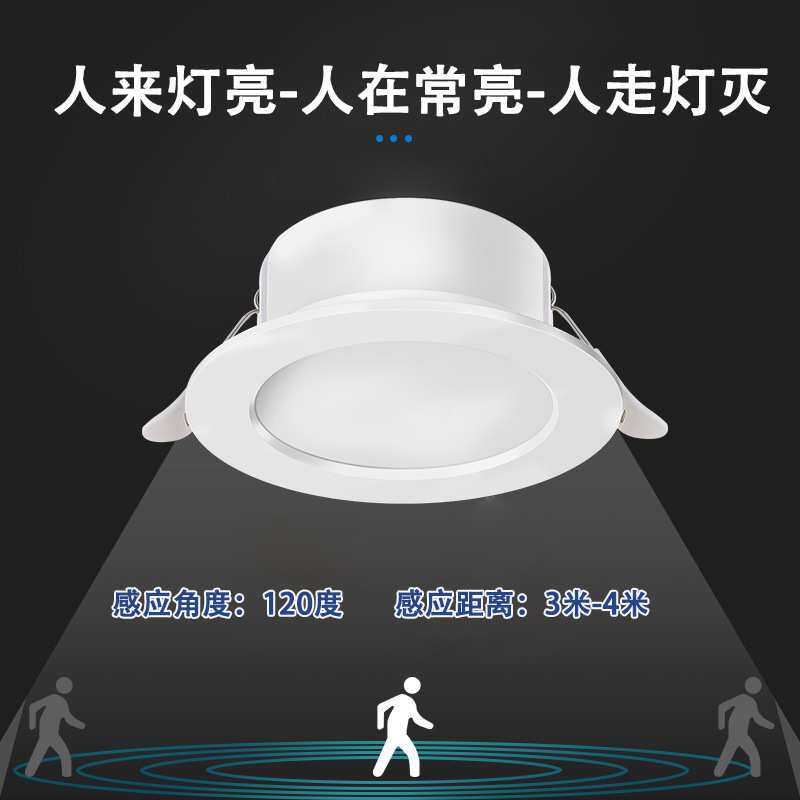 新款LED人在常亮感应筒灯嵌入式人体雷达射灯无主灯存在传感器