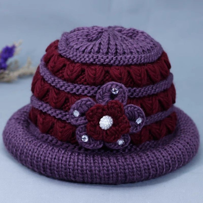 老年人冬季帽子女式奶奶妈妈老人保暖帽中老年加绒毛线老太太棉帽