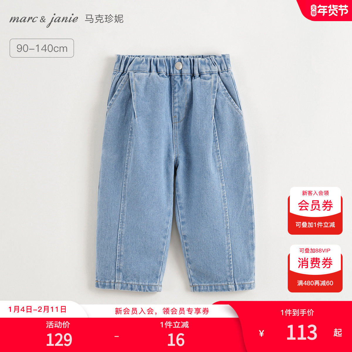 马克珍妮男女童时尚百搭牛仔裤儿童萝卜裤宝宝春装新款裤子250291