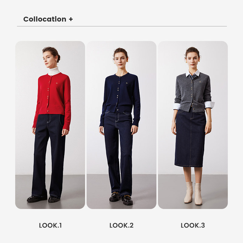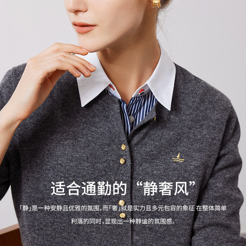 【100%羊毛】Navigare意大利小帆船圆领针织开衫女秋冬通勤羊毛衫