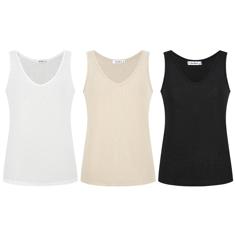 MosesQueen魔西女王米白色棉麻吊带背心夏季外穿宽松内搭v领上衣