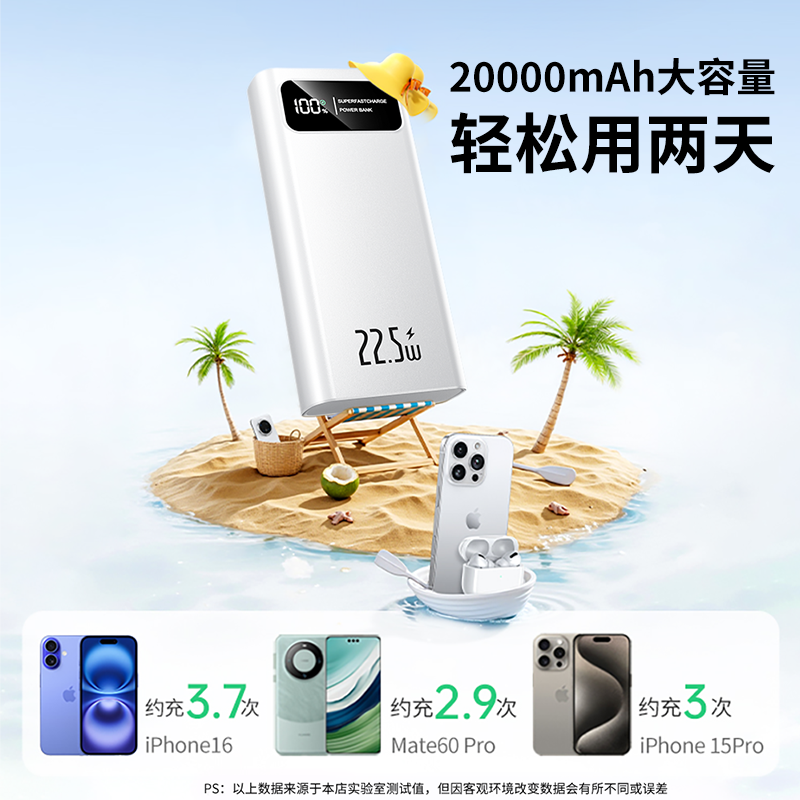 3C认证2025新款充电宝20000毫安超大容量适用小米华为苹果vivoppo